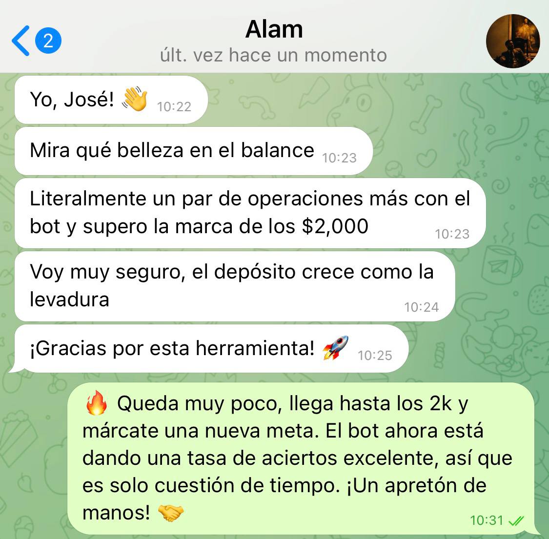 • Yo — José, un trader profesional con 8 años de experiencia. Mi camino empezó con 150 dólares, errores, pérdida del depósito y una larga búsqueda de un sistema que sea capaz de soportar cualquier condición del mercado.